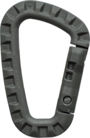Accessoire om tactische uitrusting te borgen. Deze carabiner is gemaakt uit hoogwaardig sterk polymeer en voorzien van een antislip structuur. Heeft een lage IR waarde.
