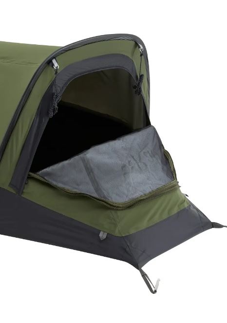 With an overhead hoop and a micro pole at the foot, there’s plenty of structured volume for sleeping with vital gear like your gloves, batteries, water bottle and backpack. The zipped main entry also comes with an integrated mosquito mesh door and an internal height of 60cm for a comfortable, almost tent-like experience.