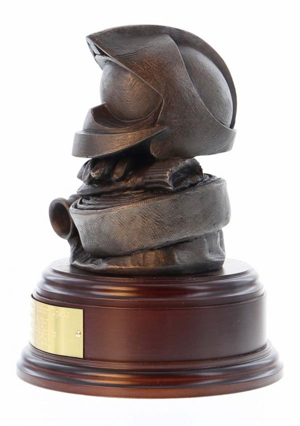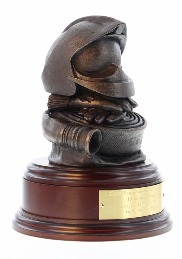 Gallet Helmet, Gloves and Hose. It is cast in cold cast bronze and it makes the perfect fire service retirement gift or ex-fire service ornament on a surface, bookshelf of coffee table.