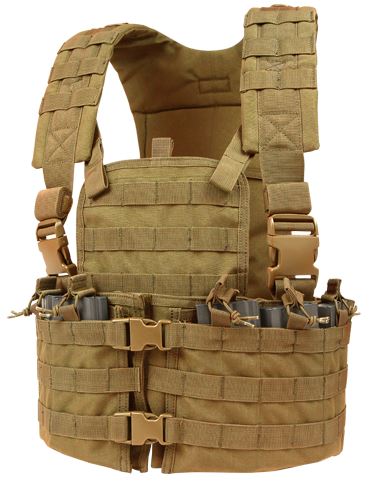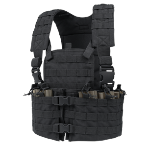Modulaire chest rig incl. 6 interne C7/C8/M4 houdertassen met bungeesluiting, 2 interne vakken, volledig verstelbaar harnas met snelsluiting en Molle. Op de rug is een hydration vak aanwezig. Verstelbaar in de maat M t/m XL.