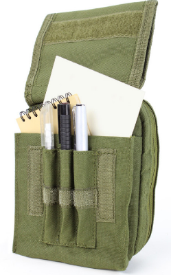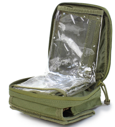 Kaartentas met opvouwbaar vinyl pouch voor kaart en diverse kleine opbergvakjes voor potloden/pen. Voorzien van ritssluiting en klittenband patch.