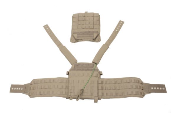 The releasable system is a lightweight armour carrier which accepts both soft and hard armour solutions in front rear and side integrated pockets. The carrier is covered all round with multiple rows of 1 inch matched camo MOLLE webbing which allows the attachment of a large selection of pouches in multiple mission specific set ups.