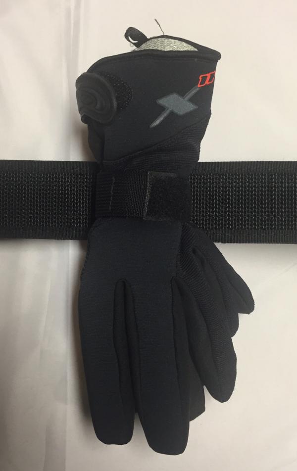 klittenband bevestiging om aan de koppel te bevestigen met een lus om je handschoenen verticaal aan je koppel te bevestigen.