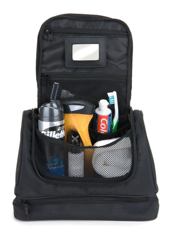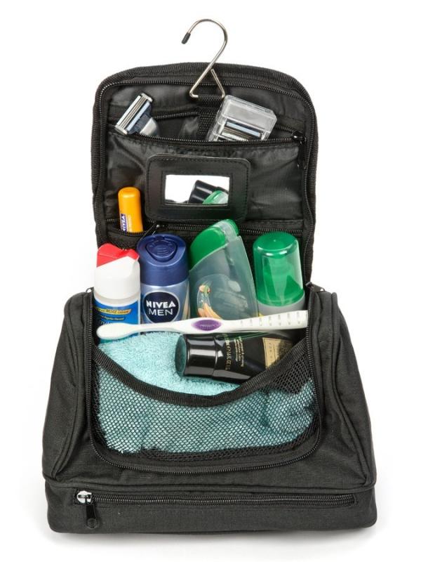 Ruime toilettas voor alle noodzakelijke toiletgerei als tandpasta, tandenborstel, deodorant, douchegel, shampoo, scheergel, handdoekjes e.d. Verkrijgbaar in de kleuren Olive, Black. Afmetingen: 18,5x27x14,5cm. Weegt 320 gram.