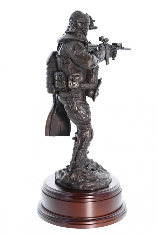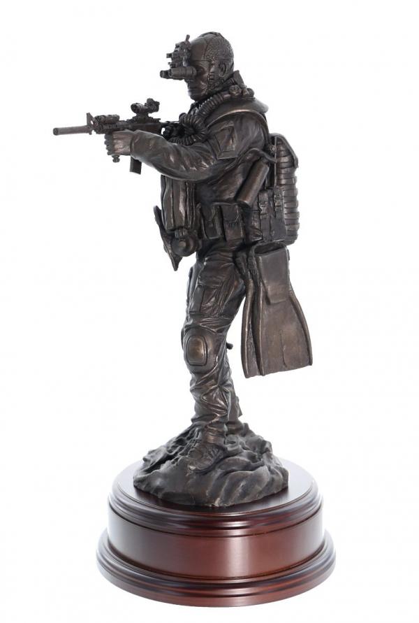 12" scale cold cast bronze resin sculpture of a Special Forces Combat Swimmer standing.