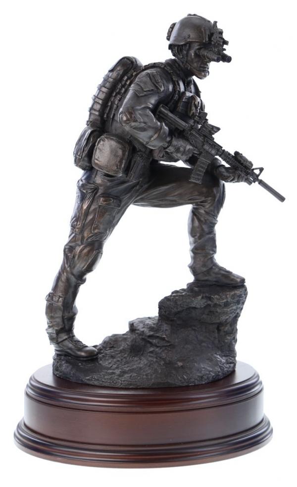 This is a 12" scale sculpture of an Elite Special Forces Trooper conducting a a night operation in modern times.