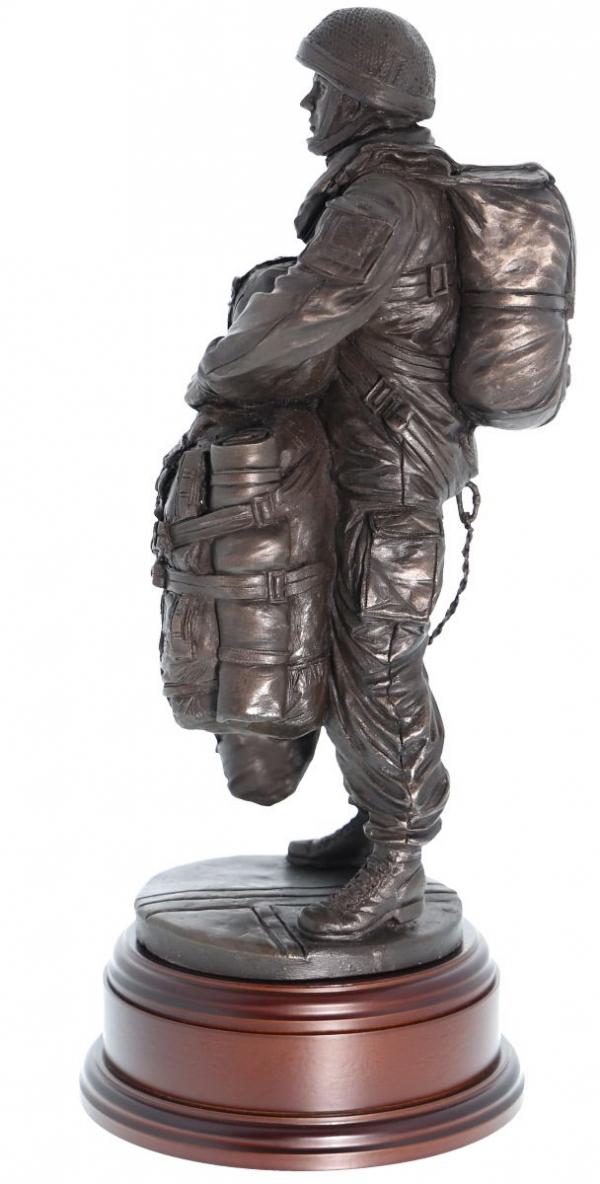 12" scale cold cast bronze resin sculpture of the Parachute Regiment Paratrooper with a modern LLP Parachute.