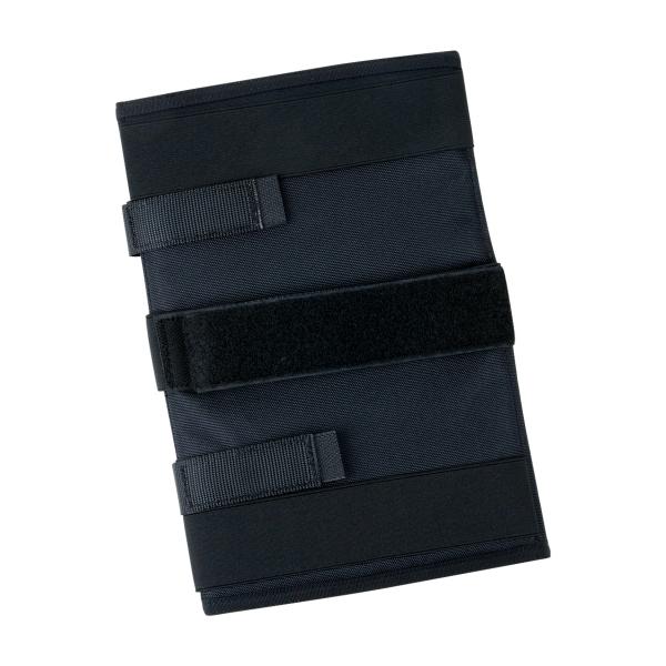A5 notebookcover, welke als een 3-luik openvouwt, geschikt voor A5 notebooks. Voorzien van papierklem, doorzichtige map en diverse kleine opbergvakken voor zaklamp, pen, kompas e.d.