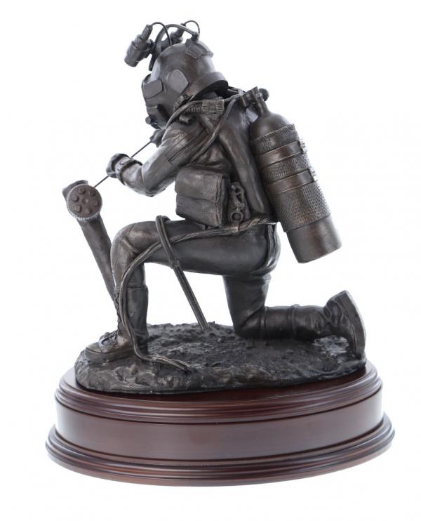 his sculpture depicts a modern day Diver working with a thermal lance on the seabed.