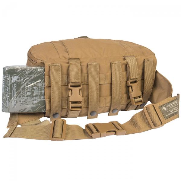 Kan worden gedragen als heuptas maar je kunt hem ook bevestigen op je vest met Molle.