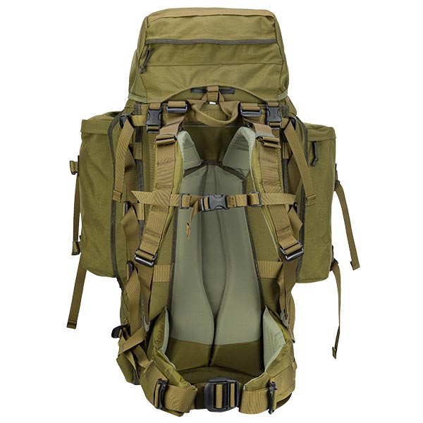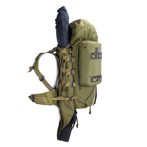 This backpack combines the advantages of the popular MMPS Crusader II with the Special Mission Pack System (SMPS) from Berghaus. It is possible to separate both side pockets and use them together as a 20 L day pack. The Weapon Systems variant allows quick and easy stowing and pulling of your weapon thanks to a compartment accessible from above and below. The underside of the weapon bag can be rolled up and secured with 2 buckles. On the front there are 2 clips for attaching hiking sticks or an ice pick. Other loops on the side pockets are designed to hold skis. For added stability, a reinforcing metal frame is installed in the back area.One of the most important points to remember is hydration during hiking or other activities, this backpack has a holding device for a Hydropack, 2 protected openings on the sides are provided for running drinking hoses.