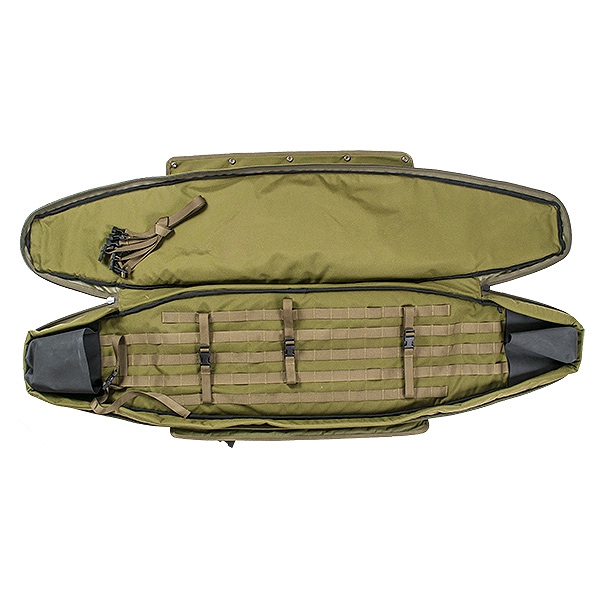 This practical rifle pouch can hold a weapon up to 130 cm in length, longer rifles can be transported taken apart. To secure the weapon, multiple individually adjustable straps with clip closure are provided. The Dragbag has a removable back support system with extra hip and chest strap. As part of the SMPS concept, it can also be easily combined with the Crusader RC backpack. The main compartment is closed with a zipper and is additionally secured with several snaps. Opens into a usable shooting mat.