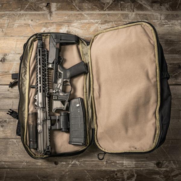 The Jacknife™ features excellent accessibility with its full length clamshell opening storage pocket, perfect for a take-down rifle, documents, jacket, or EDC items. A separate, reinforced tech pocket keeps your technology safe and secure. Internal slip pockets and two external zippered pockets offer additional organization and storage options. A fully adjustable and removable shoulder harness and a hip belt tunnel provide a custom fit.