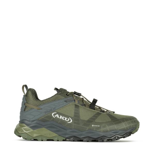 Fast hiking shoe for dynamic activities, suitable for off-road adventures where traction, protection and high cushioning are required. The Vibram Traction Lug sole with Megagrip and High Cushion and High Rebound EVA midsole offers amazing grip and cushioning. It features Dynamic Fit technology that dynamically adapts the boot?s heel tension with your natural stride to increase comfort and stability, and the AKU Elica Natural Stride System to promote biodynamic efficiency.