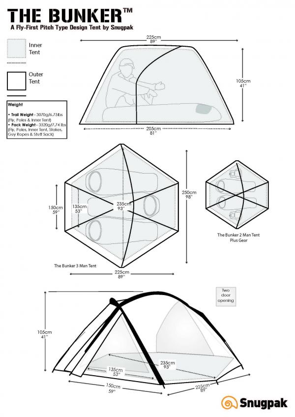 De Bunker is een iconische drie-persoons koepel basecamp en expeditie tent, ontworpen voor robuuste semi-permanent onderdak bij blootstelling aan een langdurige ernstige weersomstandigheden. Weegt 3070 gram. Afmeting: 225cm(L)x205cm(D)x105cm(H). Ingepakt: 45cmx20cm.