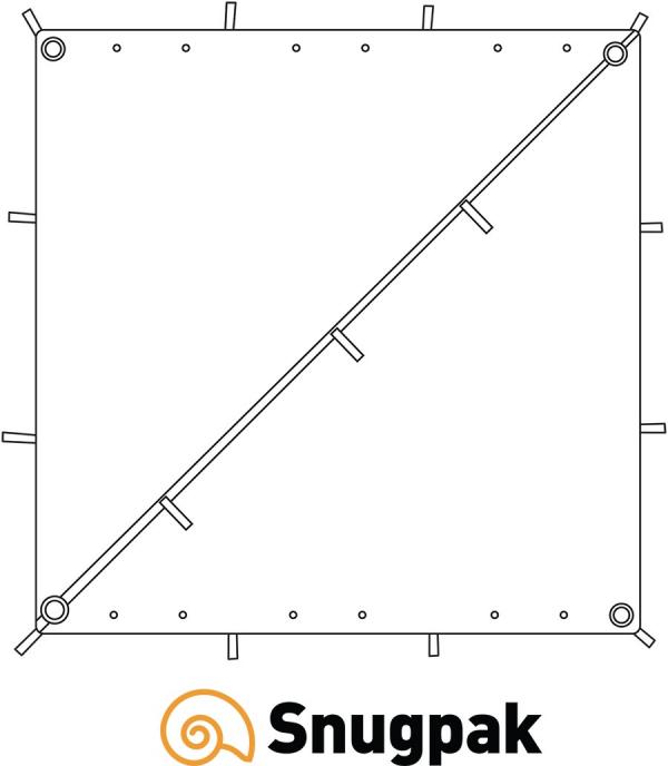 De Snugpak All Weather Shelter is een compacte ruit vorminge zeil. Afmeting: 300cm(L)x300cm(W). Ingepakt: 24cmx20cm.