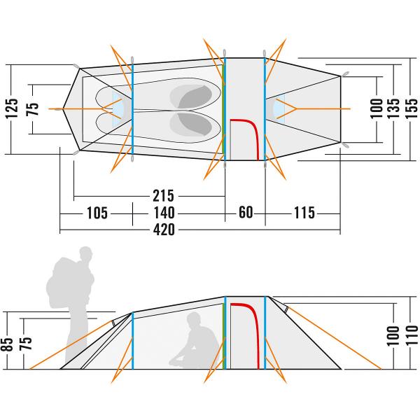 Lightweight 2 man tent with vestibule for trekking and camping.