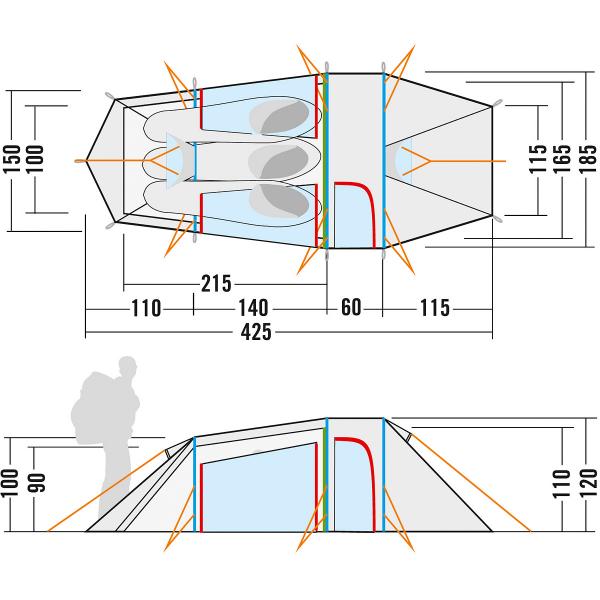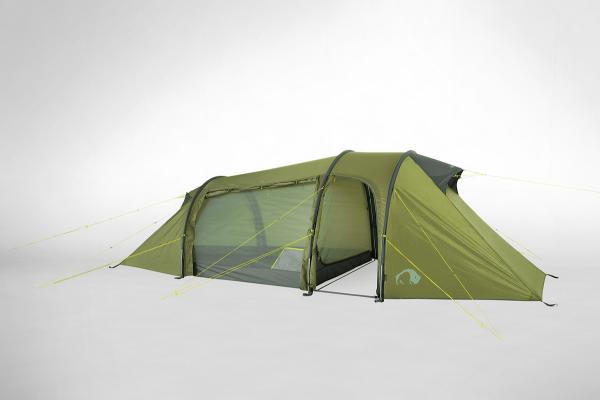 Optimally ventilated 3 man tent with three poles and a large apse, ideal for hot climate zones.