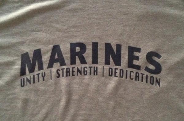 Nieuw Mariniers T Shirt met de Korpswaarden in het engels aan de voorzijde bedrukt. En 1665 op de achterzijde gedrukt.
